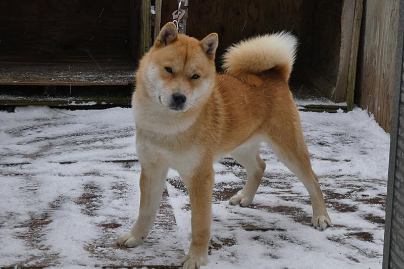 雪が積もっているのに今朝は外に放り出されている神(ジン) 性格が穏やかでガサガサしないでとってもめんこい子です。