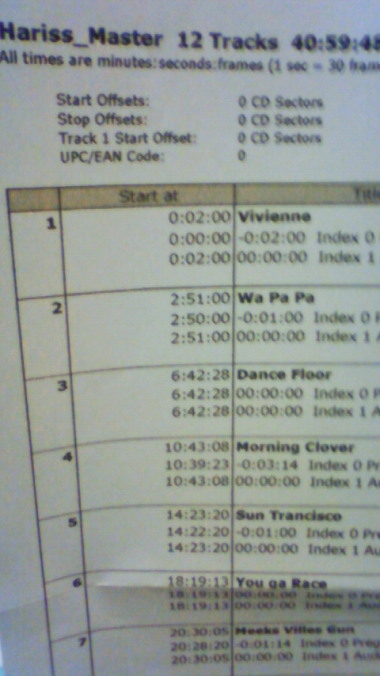 マスタリング終了! 押しに押してしまったけど、ようやく完成しました。 12曲で41分!それだけでもう最高! 曲良し、音良しで悔い無し! こんな曲順! 想像してみて。 『VIVIENNE』HARISS VIVIENNE WA-PA-PA DANCE FLOOR MORNING CLOVER SAN FRANCISCO 優雅レース MEEKS VILLE'S GUN SMILE WORKING GIRL WEEKEND POP製BUS EVERYTHING BELIEVES IN THE DAY