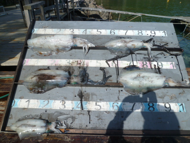松浦氏が潜水艦筏で アオリイカ 30cm(1100g) 1杯 【ヤエン】 長岡京市の大園氏が潜水艦筏で アオリイカ 28cm 1杯 木田氏が排水口筏で ヒラマサ 45〜50cm 3匹、 イシガキダイ 27cm 1匹、 アコウ 38cm 1匹、 ガシラ 15〜25cm 6匹、 メバル 20cm、1匹 梅垣氏が排水口筏で イシダイ 35cm 2匹、 グレ 30〜35cm 8匹