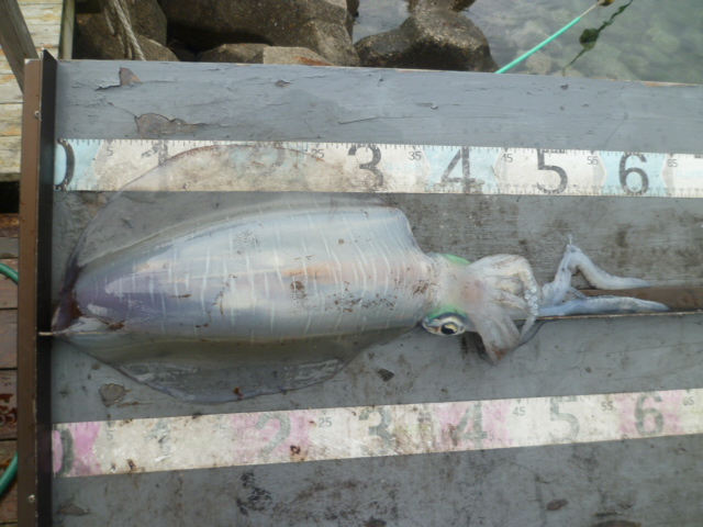 N氏も潜水艦筏で アオリイカ 26p(770g) 1杯【ヤエン】 アオリイカヤエン釣りのバラシが非常に多い 三田市の辻崎氏も潜水艦筏で コウイカ 20p 2杯【エギ】 南丹市の浅田氏が排水口筏で グレ 20〜30p 7匹 大阪市のシバトウ氏も排水口筏で イシダイ 35p 1匹、 グレ 30p前後 6匹
