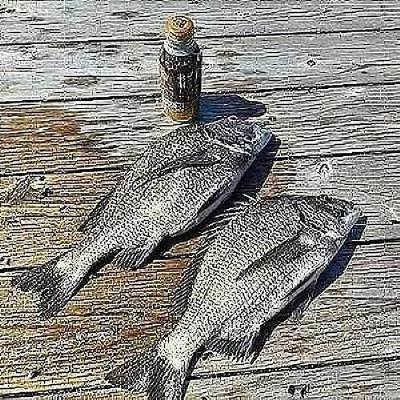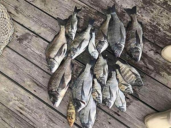 枚方市の芝田氏が潜水艦筏で チヌ 32〜45p 3匹、 グレ 35p 1匹 【短竿 ハリス1.75号 オモリ0〜3B チヌ3号針 サナギ・コーン・オキアミ】