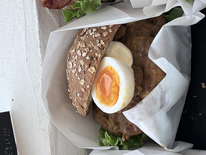 画像三枚目、社長のお気に入り。「スパイシーチキンと半熟卵バーガー」