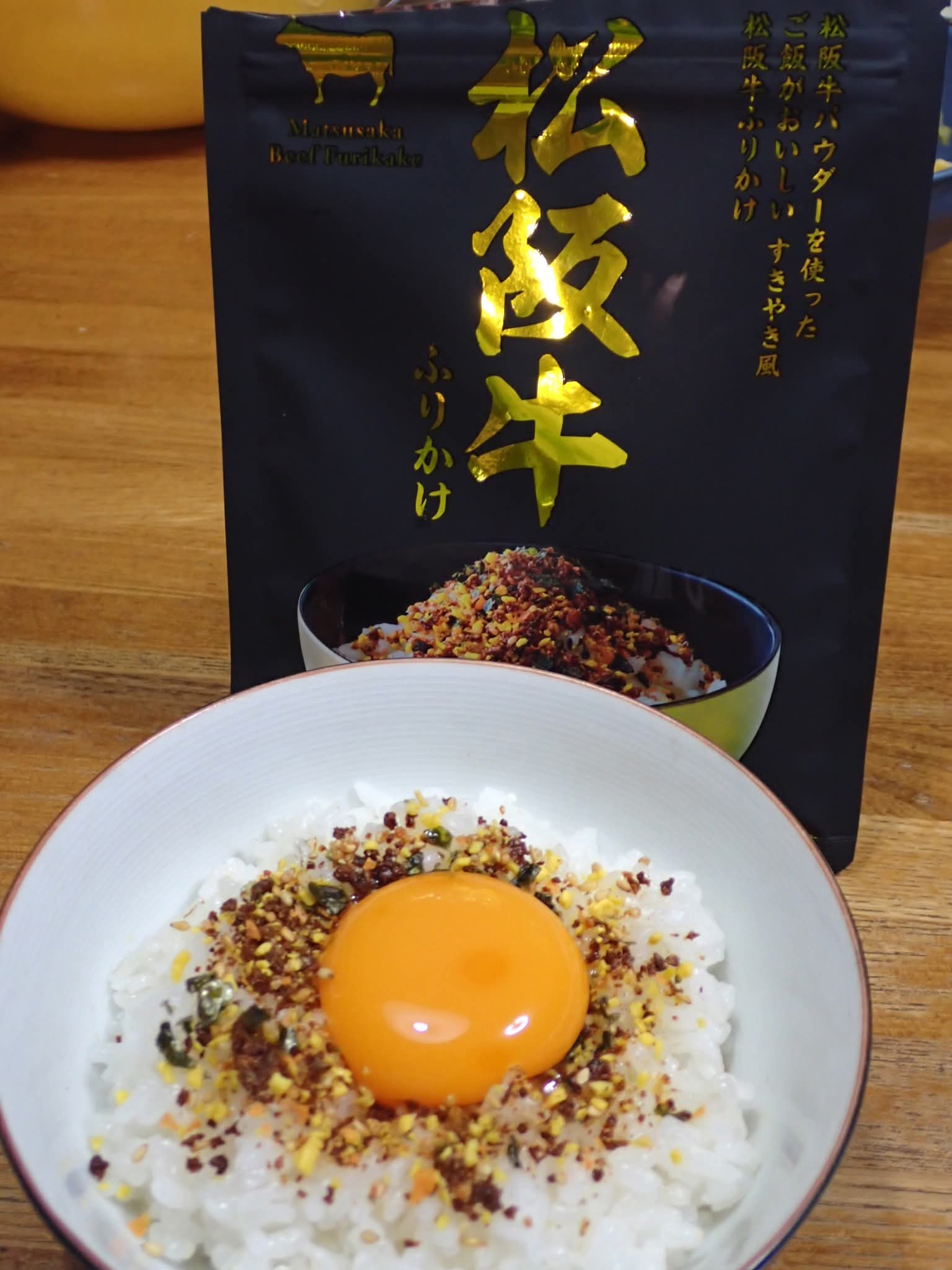 師匠から松阪愛をいただきました、地元を愛するって素晴らしいですよね。パッケージ裏のレシピに載ってたので真似しました。#松阪市 #松阪愛 #松阪牛 #ふりかけ #名古屋コーチン卵 #たまごかけご飯 #地元愛 #たまご百景