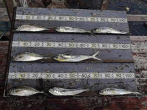 高島市のО・T氏が潜水艦筏で サゴシ 55p 1匹、 カンパチ 45p 1匹、 ツバス 35p 5匹、 アジ 15〜20p 5匹、 アイゴ 20p 3匹