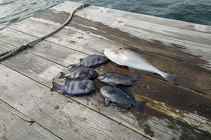 明日ご予約の筏の一部のお客様は、定員の都合により先に30分程早めに出船する便があるので早めにお越しください 高浜発電所における重量運搬物の搬入作業に伴い一部筏の下記の日程で営業を停止致します。 排水口筏・潜水艦12番筏 11月5日〜25日迄 ご迷惑をお掛け致しますが宜しくお願い致します。 明日より潜水艦筏がご利用頂けます。 【晴れ時々曇り、西風強い波1mウネリ有り】一番船7:00 最終船16:00 亀岡市の野尻氏2名様がヘタが崎沖筏で アジ 20〜32p 50匹(30p前後が多い)、 チャリコ 25p前後 10匹、 ツバス 30〜40p 3匹 14時上がり 名古屋市のY氏もヘタが崎沖筏で アジ 20p前後 20匹 14時上がり帰る15分前からアジが釣れ出したようです 京都市の杉江氏がヘタが崎筏で アオリイカ 15p(リリース)〜820g 2杯【ヤエン】 草津市の玉井氏4名様がヘタが崎筏で アオリイカ 500g・800g・1sオーバー 2杯 計4杯 【ヤエン1・エギ3】 明石市の高木氏が湾内筏で チヌ 28〜36p 7匹(オキアミ) 加古川市の小丸氏も同筏で チヌ 30〜47p 4匹(オキアミ) 明石市のキム氏も同筏で チヌ 30〜35p 3匹、 レンコダイ 30〜35p 3匹(オキアミ)短竿 匿名さんがヘタが崎沖筏で サゴシ 7匹 (サイズ未確認・メタルジグ)